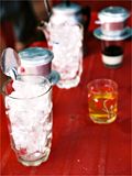 もちろん場所によって値段は違うが、庶民的な店はだいたい3つの値段に分かれているようだ。一番安いのがごく小さいコップに入って出てくる暖かい(冷たい=ダーに対し、暖かい=ノン)ミルクコーヒーで、だいたい2,000ドン(≒16円)。これはたぶん、作り置きのコーヒーを注いでいるだけだと思われる。そしてそれに氷が入っているものが3,000ドン(≒24円)。ベトナム独特のアルミコーヒーフィルターにお湯を注いで出てくるのが5,000ドン(≒40円)。お湯が落ちるまでをゆっくり待つのが何とも贅沢な感じ。