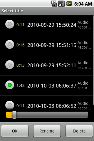 | List | Click : Select Title and play Long Click : attaches to e-mail and EverNote |