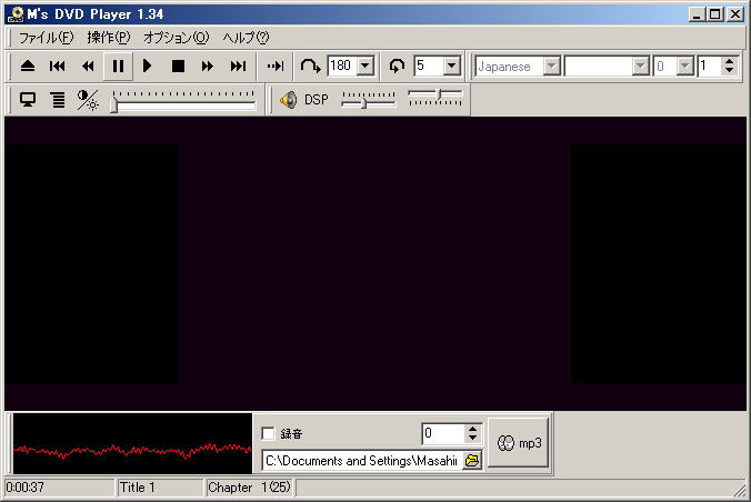 音声ファイル(Wavファイル:無圧縮48kHz,ステレオ,16bit)を保存するには、「録音」チェックを入れてDVD再生すると、ファイルへ録音できます。