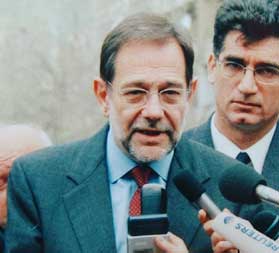昨年のマケドニア紛争、現在も混迷する中東情勢などの調停に、欧州連合(EU)のJ・ソラナ上級代表(共通外交安保政策担当)は休む暇がありません。中東を含むヨーロッパ発のニュースで一番よく出てくる政治家は、最近までは米国務長官(クリストファー、オルブライト)というのが相場でしたが、このところこの位置を「EU外相兼防相」が米パウエル国務長官と激しく争っている感があります。3月13日午後早くのソラナ代表のベオグラード訪問は、ユーゴ連邦=セルビア+モンテネグロの連邦体制見直しが話題になった昨夏以降もう数えて何度目なのか私にもよく分かりませんでした。が、とにかく「3月15日までに決着を付ける」と2月にブリュッセルで宣言した同代表は、15日のEUサミットに新連邦案の合意を取り付けて持って行くまでは帰らない、という決然とした態度で連邦政府第1庁舎に入って行ったといいます。13日夕方に予定されていたベオグラード空港での記者会見は、同日の帰国便とともにキャンセル。連邦側=コシュトゥニッツァ大統領、ラブス副首相、セルビア共和国側=ジンジッチ首相、モンテネグロ側=ジュカノヴィッチ大統領、ヴヤノヴィッチ首相の3サイドとソラナ代表の会談は同日深夜まで延々と続きました。地元テレビのカメラマンを務めたわが悪友ボグダンは「終わったのは夜中の3時。みんなシケた顔をして出てきたよ」と翌日語ってくれました。