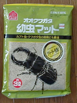 (2000年1月15日加筆) カブト幼虫に与えてみたところ、すごく食いがいいようです。幼虫餌バトルのようにして与えてみると、このマットのほうにばかり行ってしまいます。売っている店を探してみたところ、札幌市西区内の某ペットショップで1袋だけ在庫があったのですが¥1200もしていました。それ以外に店頭で見たことがないので、試しに仕入れてみたという程度なのかもしれません。奈良オオクワセンターで通販していて¥500でした。私が買った¥380という値段は在庫処分価格だったのかもしれません。