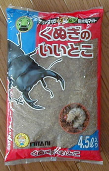 このマットはくぬぎの朽木を細かく粉砕したものです。値段がかなり高いですね。 我が家ではこのマットだけで育てているのは1匹だけで、 同社の「昆虫マット」やマルカンの「若葉」に混ぜて使っています。 このマットだけで育てている幼虫は糞が詰まっているおしりの色も薄い茶色。体はほっそりしてスマートです。