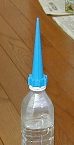 1999年10月13日加筆: このペットボトル用潅水器は自分で穴をあけて使うのですが、穴のあけ方をきちんとすればマットに刺しっぱなしでも大丈夫なようです。幼虫が入っていないケースに1日刺したままにして、湿り具合がいいみたいなので刺しっぱなしにすることにしました。