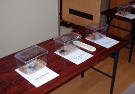 8月8日、スターライト会館で「カブトムシ・クワガタ飼いかた教室」というのをやりました。内容は成虫飼育のコツなどのレクチャのほか、ビデオ上映とクワガタの展示です。展示したクワガタは道内では採集できない種類の国内、国外の比較的大型のものです。