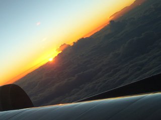 日本に着いたのは夕方5時半過ぎでした。三宅島辺りで夕日が沈んでいくのが見えました。