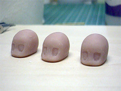 頭の形が確定したのでサフを吹きました。3個同じものを作っているつもりですが同じになりません(^^;。