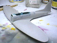 右側の機体と主翼の合わせ目に段差ができてしまいました。左側はそうでもないのですが、このままでは情けないのでペーパーで削り込んで整形しています。