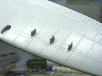 切り取った支柱を正しい位置に再接着しました。ノコの刃の分だけ短くなったので、プラ板を挟んでいます。