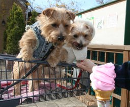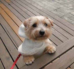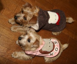 今日はノーフォークテリア柄パーカーでお出かけ。 実はしゅうちゃんとお揃。 |