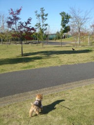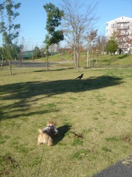 | カラスを追いかけるのが得意なんだ。 絶対捕まらない。 |