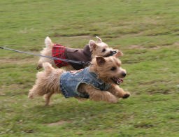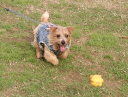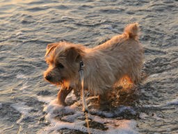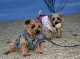 冬の夕方の散歩。ボールを追いかけないと寒いのだ。 |