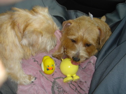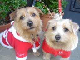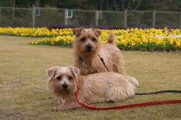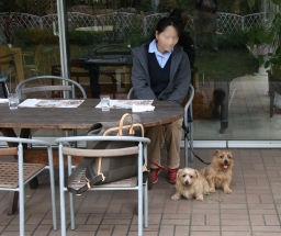ノエルはママの膝の上。 ぼくも乗っけてよ。 |
