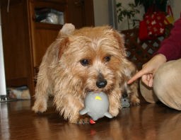 思いっきり振り回す。パピパピ鳴るし、遠心力が加わり、くわえていたのを離すとどこかにすっ飛んでいくのが楽しくてしょうがない。。 |