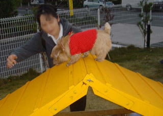 最後に綱吉の湯ドックランで、アジリティーのまね。