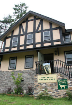 軽井沢に着いたら、もうお昼。 チェルーシーズ ガーデン カフェでランチ。 看板犬のチェルシーちゃんとハリー君と仲良くなったよ。 |