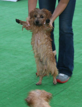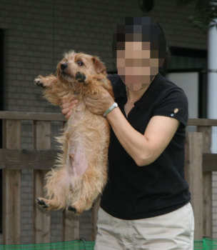 レオ君はFさんにストリッピングをしてもらったばかり。つるつるだね。 そういえば、昨年、軽井沢に来た時にノエルもFさんにストリッピングしてもらったんだっけ。 |