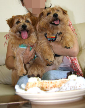 さて、今日は兄弟犬ミニオフ会の日。心配だったお天気も何とか回復。 アッ、弟のノーティ君だ! |