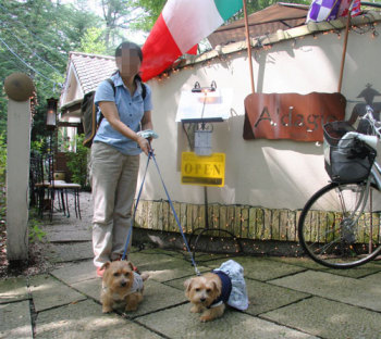 今年もアダージョに来たんだ。 1.天然クーラーのもと、美味しいイタリアンが食べられる。 2.座席の下は冷たい石なので、僕たちも暑い中のお散歩からクールダウン。 ワンちゃんメニューはありません。 |
