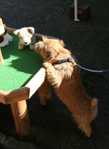 朝霧高原ドックフィールドガーデンに着いたぞ。 プリンちゃんが歓迎してくれたよ。 |
