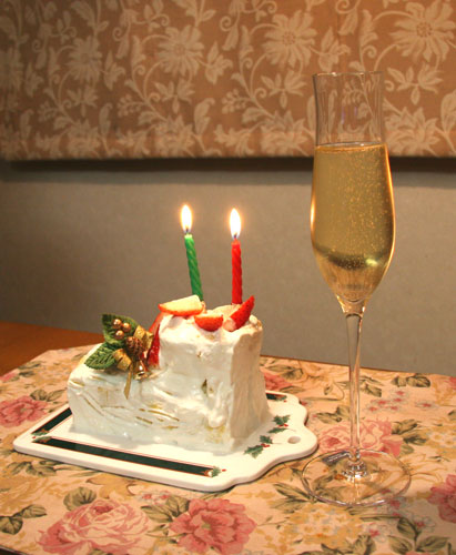 わーっ!ろうそく2本付いているわ。 美味しそう。 |