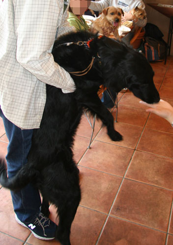 ノーティー君の相棒のフラットコーテッド・レトリバーのジャック君もご挨拶。 |