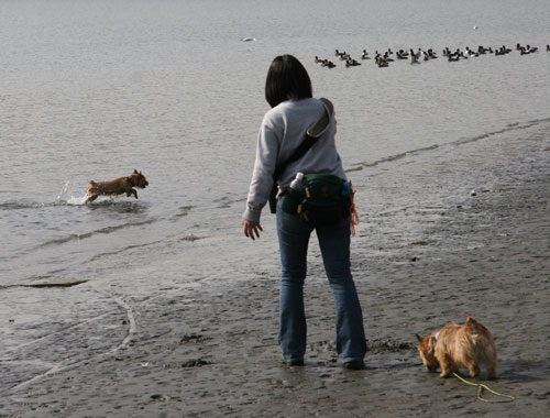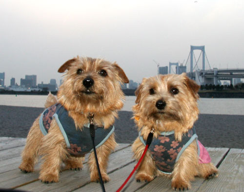 お台場に野生のノーリッチテリア出現。海の中でとびうおの様にジャンプ。 鳥を追いかけているんだ。 潮干狩りをしにきたノーリッチテリアもいたんだ。 この2頭が気になる方は、ノーリッチテリアのROZZY&SUZZYへ |