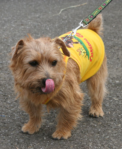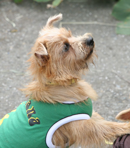 ぼくはちょっと不安! 鼻の下に草の種もついているしぃ。 食べたわけではないのだが・・・。 |