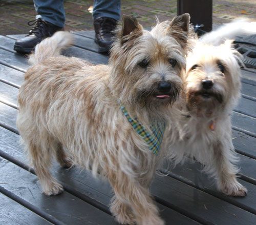ケアンテリアのももちゃんとれおん君はさくらこちゃんと同居しています。 |