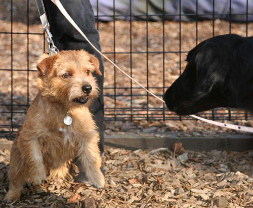 ジャックに吠えているのはまろん君。 |
