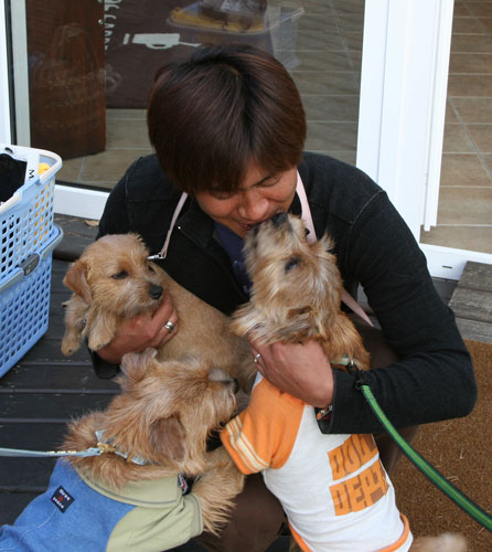 大好きなFさんに夢中なノーティー君。僕もモードのクィンシー。抱っこされている乙女はまりりんちゃん。 |