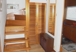 玄関と階段 以前の階段は急で危険があったので、新たに作り直しました。 玄関も段差を少なくして、靴脱ぎのためのベンチと手摺を設けました。