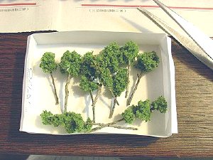 幹の塗装は不要で、できあがった樹は以下の通りです。この写真の樹木は植えたときに20mm〜50mm程度のものです。