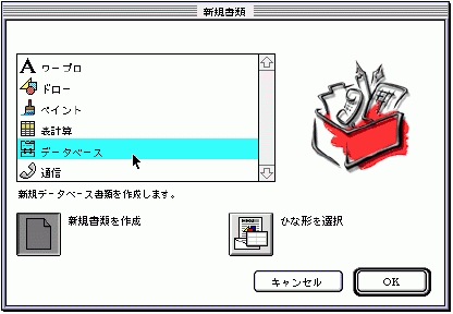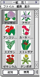 クラリスワークスには、購入時にすでに一通りの画像が登録されているライブラリが用意されています。ファイルメニューの中のライブラリの下にいろいろ項目別に分類されたライブラリがありますから、必要なものを選択します。