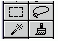 点線の四角は、マウスを四角くドラッグした領域を選択します。投げ縄は、マウスのボタンをおしたまま移動した軌跡のかたちに画像を選択します。棒のかたちをしたツールは、クリックした場所と「同じ色」の領域をまとめて選択するものです。