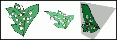 画像を選択してから同じく配置メニューの中の「変形」、「任意に回転」で画像の形をかえたり、角度をかえることができます。変形、角度、ともに選択されている時の四隅の四角いハンドルをマウスでドラッグすることでおこないます。