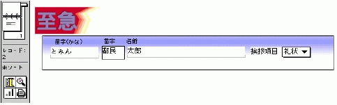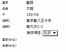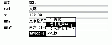 各データは、それぞれの項目名の右に入力していきます。挨拶項目はポップアップメニューですから、マウスボタンを押しながら必要な項目を選択します。