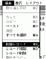 すでに、これでデータベースはできあがっています。それぞれのフィールドに必要な情報を入力した後に、編集メニューから「新規レコード」を選択してください。このデータの下に次のデータのフィールドが表示され、入力できるようになります。
