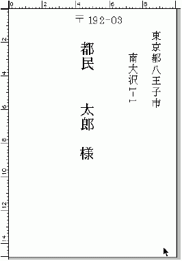 固定される文字(たとえば「様」や「御中」、差出人の名前、住所等)は、ここでテキストデータとして入力してしまいます。