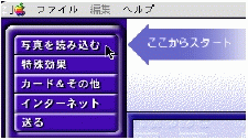 画像を読み込むには、まず左上のメニューから「写真を読み込む」を選択します。