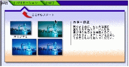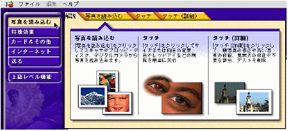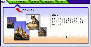 フロッピーに保存された写真画像は、そのままいろいろなプログラムで利用することができます。ここでは、まずAdobeのPhotoDeluxというソフトを使ってみます。これは、Photoshopという有名な画像処理ソフトの、基本的な部分を、丁寧なガイドによって簡単に使えるようにしたものです。