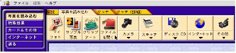 一番上の花の絵のついたアイコンが本体です。これをダブルクリックしてひらきます。次のような画面になります。これが、初期画面で、ここからいろいろな作業を開始するわけです。
