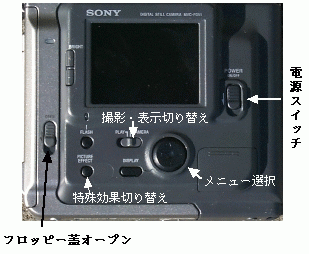 液晶にはレンズからの画像が写ります。フロッピーが入っていない場合は