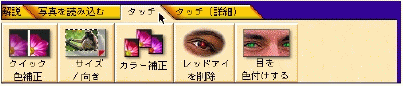 タッチメニューには画像の色補正やサイズの変更などが含まれています。