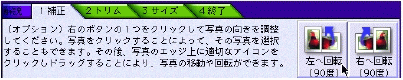 このほか、回転や、画像や文字の書き入れ等、いろいろなことができますので、実際にためしてみてください。多くの場合、編集メニューの「取り消し」やファイルメニューの「復帰」で作業のやりなおしができます。元のファイルが残っていればいつでもやりなおせるので、きがねなく遊んでみてください。
