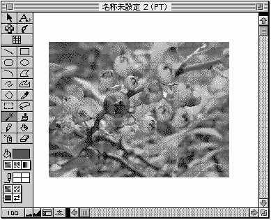 クラリスワークスのペイント機能にも写真を扱うのに必要なものが含まれています。クラリスワークスのペイントで新規書類を開き、PhotoDeluxから画像をコピーします。