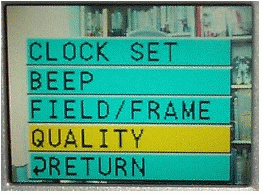 これらは、撮影の設定を変更するものです。それぞれ、メニュー選択ボタンで選択、ボタンを押し込んで必要なモードに設定、というかたちでつかいます。覚えておくとよいものはこれらのうち、FIELD/FRAMEとQUALITYの二つです。