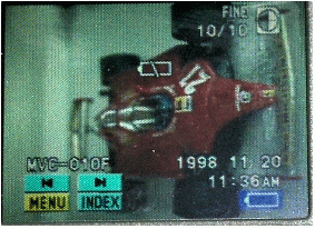 このカメラは640×480ピクセルのVGAサイズ画像を、JPEGという一般的な圧縮形式でフロッピーディスクに保存します。露出は自動、フォーカスは固定(35mmカメラで47mm相当)なので、撮影に際しては特に面倒な作業もありません。普通のカメラと違う点は、ファインダーを覗くのではなく、背面の液晶に表示される画像をみながら撮影のタイミングを決める、というところでしょう。