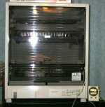 それから、乾燥機を買った。塗装の後というのは、家の中で食器ケースにいれているとはいえどうしてもきれいに乾かなかったりほこりがつきやすかったりするのが嫌で以前から乾燥機を探していた。ModelCarRacersでは「自然対流型の旧式がいい」とあったのでそのタイプを探しまわったのだけれど、どこのも殺菌がどうのこうので熱風式ばかり。そんななか、地元のヤマダ電気のカタログをみていたらNationalがひとつだけ自然対流型をだしていることを発見。注文してしまった。これは、こんなの。値段は2万円弱。静か(というかまったく無音)だし、なかなかのすぐれものだとおもう。FD-550Kという型番で、30分、60分、90分、120分、連続のスイッチと、4時間後、6時間後、8時間後、10時間後に乾燥完了のスイッチあり。