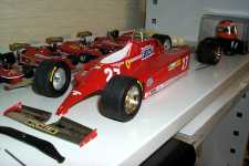 タイトルの「エンスーモデラー対談」という言葉だけど、自慢話ではなく、本物の「エンスージアスト・モデラー」の言葉にふれたければ、バイカーズマガジン別冊のModel Car Racersという良い雑誌を開いて口直しをしませう。創刊当時から、編集の小林氏が何度も何度もくりかえしていたのはこのことかあ、と、今回、妙に哀しい納得をしてしまいました、はい。時に、資料写真としては、126Cシリーズのプレゼンテーションモデル、126Cとしてのテスト時、サンマリノでの予選、ロングビーチでのCKとCX、CKの各マイナーチェンジの様子、といった細部写真で構成した一冊をだしてくれたら、これにこりずに次の号も買うんだけどなあ。ずばり、「Ferrari126C」ってかんじで。HiFiのプレゼンテーションモデルつくるときは写真がなくてすごく困ったもの。洋書で一ページだけ発見して、エンジンカウル部分の形だけはわかったけれど…