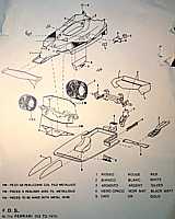 サスペンションが妙な一体型。シートもやけにでかいなあ。説明書は、まあ、こんなです。裏には完成写真もあるのだけれど、あてにしていいものやら…